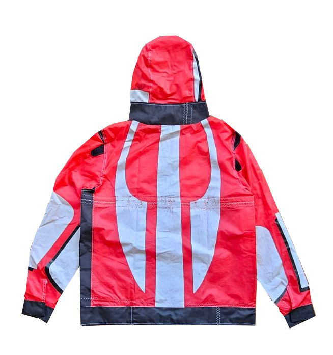 Ela é produzida a partir do nylon e de todos os aviamentos que são integralmente retirados do kite; Por isso, cada jaqueta é única; como peça de vestuário e como um diário vivo de recordações para quem o possui.